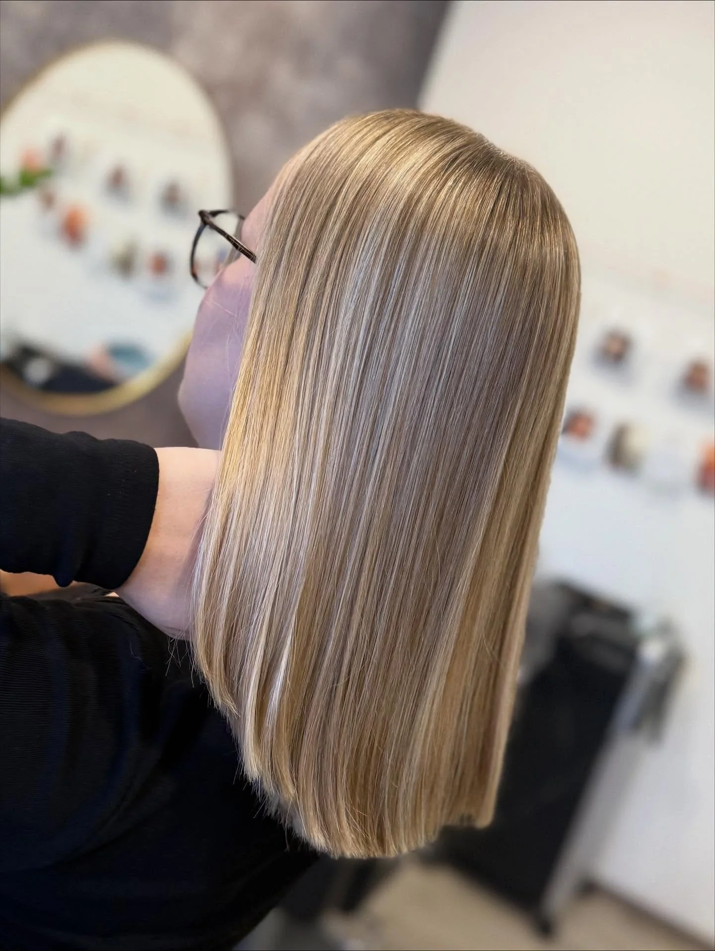 auch die klassische gute Einheitshaarfarbe oder Tönung darf nicht fehlen. Hier wird die Nuance genauso auf dich und deinen Wunsch abgestimmt.